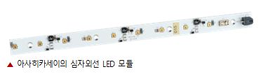 심자외선 LED 칩을 알루미늄 기판 위에 1열 9개 배치한 모듈로, 장치나 기계에 조립하는 것만으로 바로 사용할 수 있는 것으로 알려졌다.