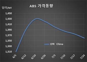 표, 그래프: <ABS 가격동향> <화학저널 2020/07/29> |