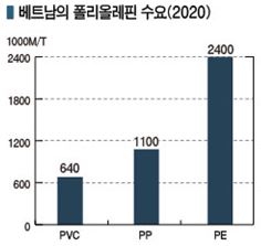 베트남은 에틸렌(Ethylene)을 생산하는 스팀크래커를 가동하지 않아 PE, PVC 신증설이 이루어지기 어려운 것으로 파악되고 있다.