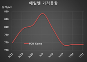 표, 그래프: <Ethylene 가격동향> <화학저널 2020/08/03> |