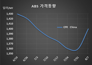 표, 그래프: <ABS 가격동향> <화학저널 2020/08/12> |