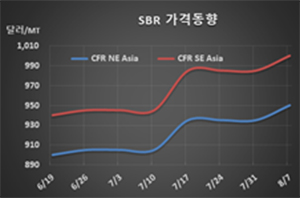 SBR(Styrene Butadiene Rubber)은 다시 상승세로 전환됐다.