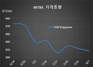 MTBE(Methyl tert-Butyl Ether)는 다시 400달러가 무너질 위기에 처해 있다.