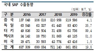 글로벌 SAP 수요는 2019년 약 200만톤으로 추정되고 있으며 중기적으로 연평균 5% 이상 증가할 것으로 예상되고 있다.