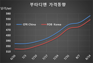 표, 그래프: <Butadiene 가격동향> <화학저널 2020/08/19> |