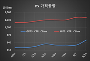PS(Polystyrene)는 오랜만에 오름세를 나타냈다.