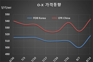 표, 그래프: <O-X 가격동향> <화학저널 2020/08/20> |