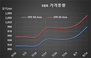 SBR(Styrene Butadiene Rubber)은 1000달러에 육박했다.