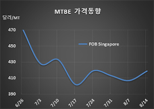 MTBE(Methyl tert-Butyl Ether)는 상승세로 전환됐다.