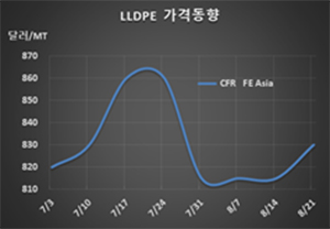 LLDPE(Linear Low-Density Polyethylene)는 동북아시아만 상승했다.
