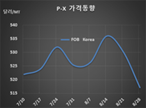 FOB Korea 517달러로 13달러 하락 … 10월 PTA 정기보수 예고