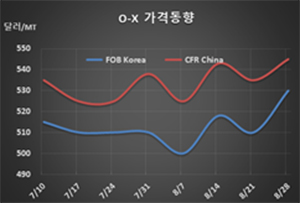 표, 그래프: <O-X 가격동향> <화학저널 2020/09/03> |