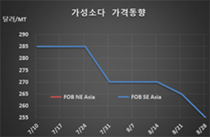 표, 그래프: <가성소다 가격동향> <화학저널 2020/09/04> |