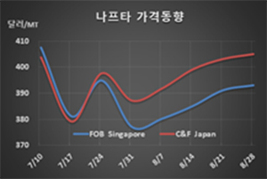 나프타(Naphtha)는 400달러대에서도 상승했다.