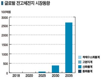 일본 시장조사기업 후지경제(Fuji Kaizei)는 글로벌 전고체전지 시장이 2035년 2조7877억엔(약 26조7720억원)에 달할 것으로 전망하고 있다.