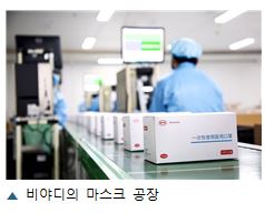 비야디는 쑤저우(Suzhou)에 소재한 IT기기 공장 일부를 마스크 생산으로 전환해 하루 100만장 단위로 마스크를 양산하고 있다.