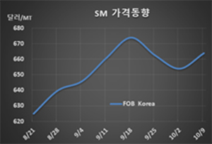 표, 그래프: <SM 가격동향> <화학저널 2020/10/14> |