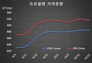 [석유화학] 프로필렌, 연휴 앞두고 약세 전환… | 2025-10-01 | ||