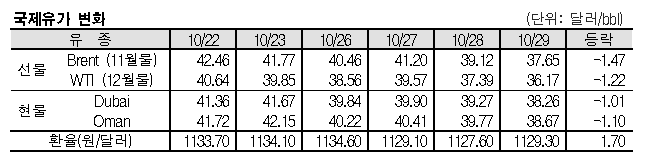 10월29일 국제유가는 유럽 주요국의 봉쇄조치 재도입 영향으로 하락했다.