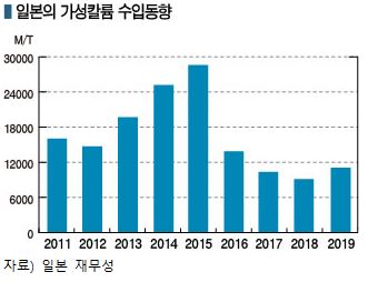 일본이 한국산 가성칼륨(Potassium Hydroxide) 수입을 규제하고 있으나 일본의 반덤핑 영향이 크지 않은 것으로 나타났다. 일본이 4년만에 가성칼륨 수입을 확대했기 때문이다.