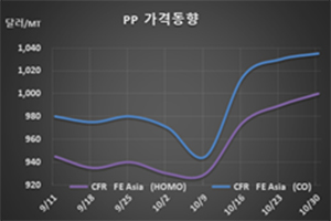 CFR FE Asia 1000달러로 10달러 상승 … 중국 내수가격 보합