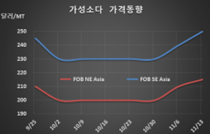 표, 그래프: <가성소다 가격동향> <화학저널 2020/11/20> |