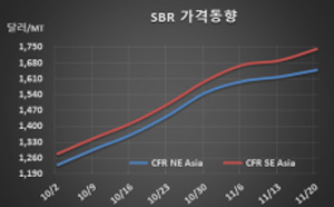 표, 그래프: <SBR 가격동향> <화학저널 2020/11/27> |