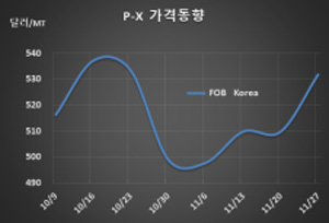 표, 그래프: <P-X 가격동향> <화학저널 2020/12/03> |