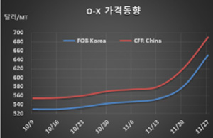 표, 그래프: <O-X 가격동향> <화학저널 2020/12/03> |