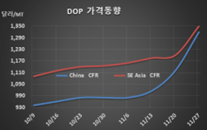 DOP(Dioctyl Phthalate)는 폭등세가 가속화되고 있다.