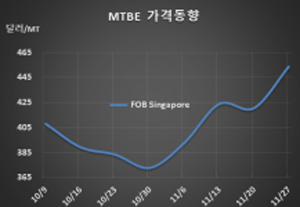 MTBE(Methyl tert-Butyl Ether)는 400달러대 중반을 회복했다.
