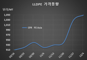 표, 그래프: <LLDPE 가격동향> <화학저널 2020/12/07> |