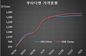 표, 그래프: <Butadiene 가격동향> <화학저널 2020/12/08> |