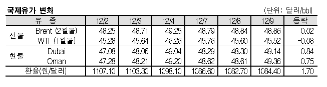 브렌트유, 48.86달러로 0.02달러 올라 … 두바이유는 49.14달러로