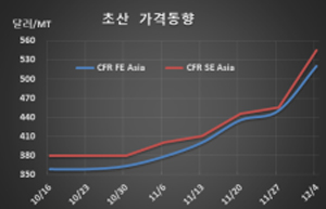 CFR FE Asia 520달러로 70달러 올라 … VAM 역시 925달러로 급등