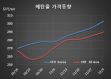 표, 그래프: <Methanol 가격동향> <화학저널 2020/12/11> |