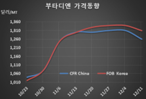 표, 그래프: <Butadiene 가격동향> <화학저널 2020/12/15> |