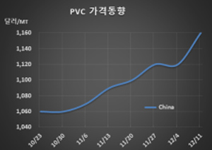 표, 그래프: <PVC 가격동향> <화학저널 2020/12/15> |