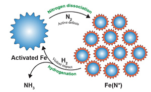 암모니아(Ammonia)를 고온‧고압에서 합성하지 않고 작은 쇠구슬을 굴려 제조할 수 있는 기술을 울산과학기술원(UNIST) 연구팀이 개발했다.