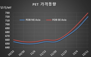 표, 그래프: <PET 가격동향> <화학저널 2020/12/17> |