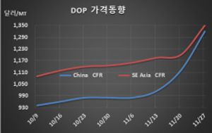DOP(Dioctyl Phthalate)는 동남아시아 현물가격이 폭등했다.