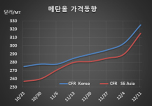 표, 그래프: <Methanol 가격동향> <화학저널 2020/12/18> |