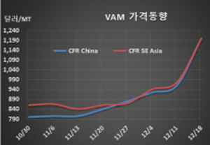 표, 그래프: <VAM 가격동향> <화학저널 2020/12/22> |