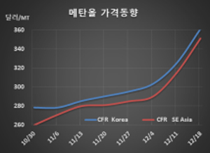 표, 그래프: <Methanol 가격동향> <화학저널 2020/12/22> |