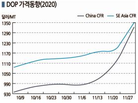 DOP 현물가격은 11월 말 CFR China 톤당 1320달러로 200달러, CFR SE Asia도 1350달러로 150달러 대폭등했다.