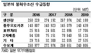 일본은 2019년 불산 생산량이 24만2188톤으로 전년대비 9.6%, 출하량이 24만806톤으로 10.4% 감소했다.