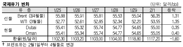 브렌트유, 56.35달러로 1.31달러 올라 … 두바이유 55.00달러