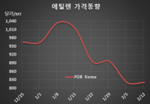 표, 그래프: <Ethylene 가격동향> <화학저널 2021/02/15> |