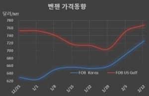 화학뉴스 2021.02.17 벤젠(Benzene)은 700달러대에서도 상승세를 유지했다.
