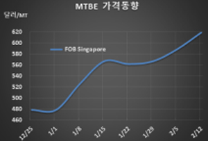 표, 그래프: <MTBE 가격동향> <화학저널 2021/02/19> |